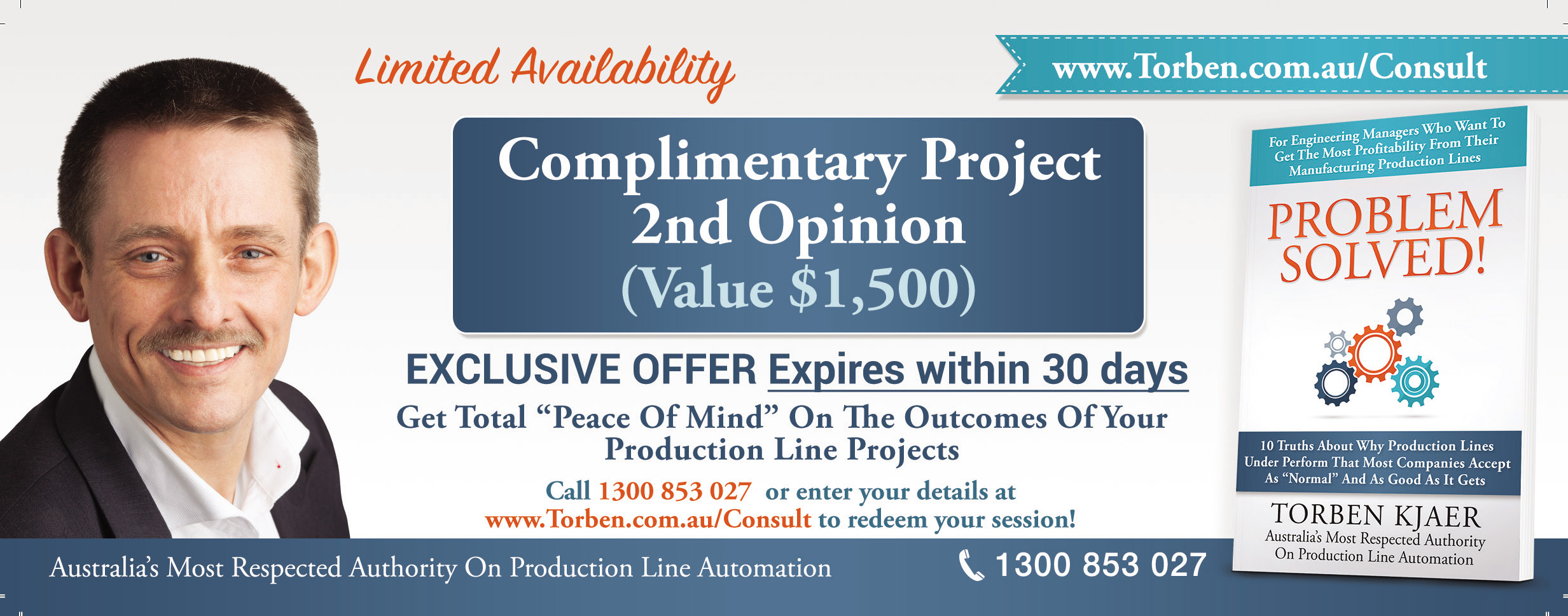 This is your opportunity to benefit from Torben’s expertise and knowledge. As he details in his book Problem Solved, Torben reveals 10 truths every project or engineering manager must know about why production lines underperform and why most companies accept this as normal and as good as it gets when they could be doing so much better.